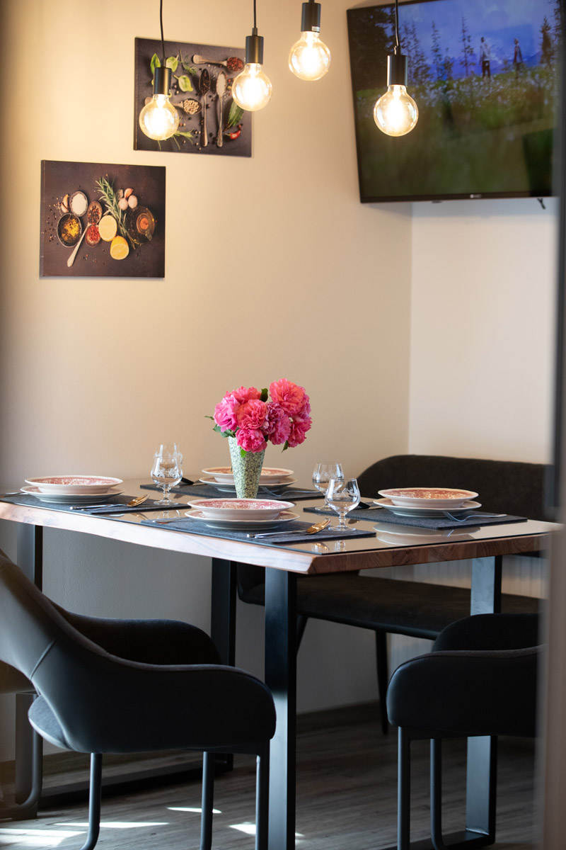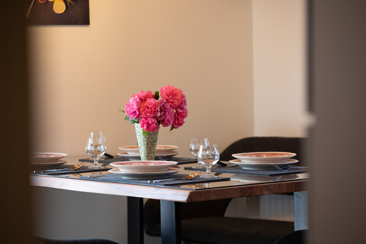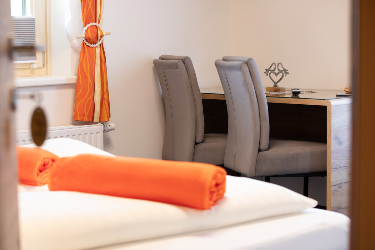 Sie finden in unserem Appartement standardmäßig Bettwäsche, Geschirr, Handtücher, Toaster, Kaffeemaschine, Wasserkocher, Bügeleisen, etc. Hochstuhl und Kinderbett auf Anfrage. Auf Wunsch bieten wir Ihnen gegen Aufpreis ein tägliches Frühstück. Ebenso können Sie auf Wunsch einen Brötchenservice in Anspruch nehmen.