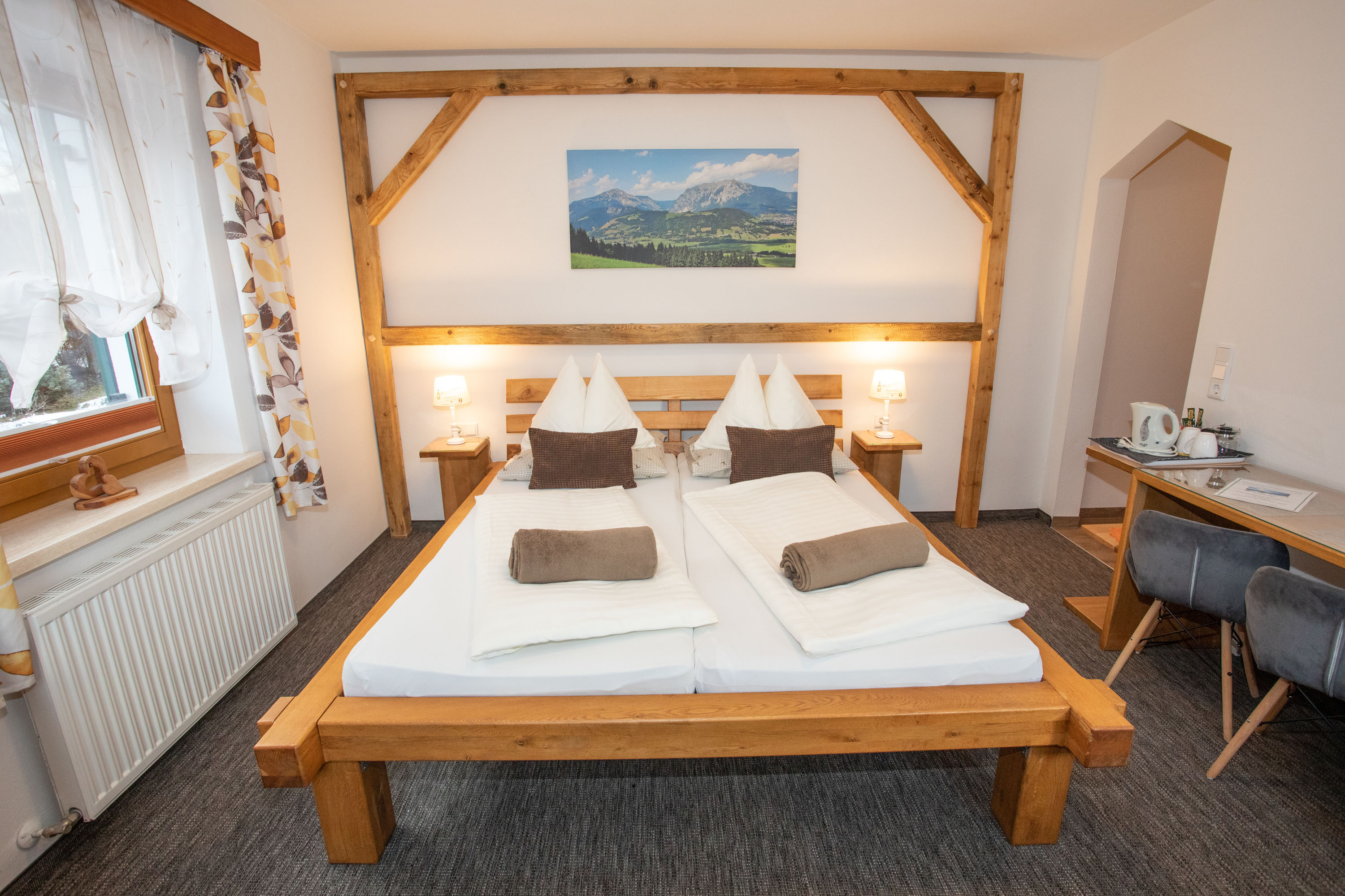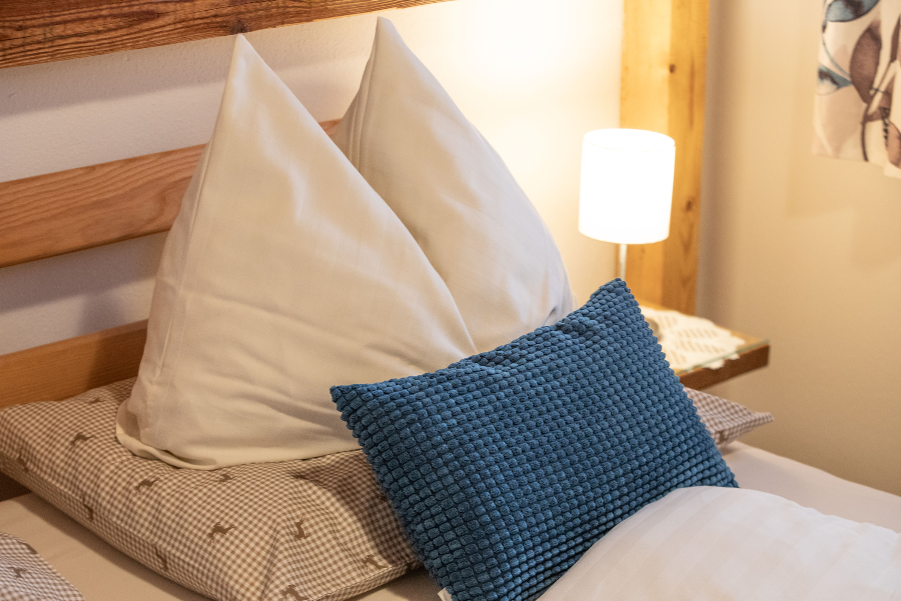 In unserem Gästehaus stehen Ihnen drei ruhige, gemütliche Doppelzimmer zur Verfügung. Alle Zimmer sind mit Dusche und WC und Sat-TV ausgestattet. Zwei Zimmer haben einen Balkon, eines befindet sich im Erdgeschoss. In unserem großzügigen Frühstücksraum bieten wir Ihnen ein reichhaltiges Frühstücksbuffet für einen guten Start in den Tag. Sie können außerdem jederzeit unseren kostenlosen W-LAN Zugang nutzen.
